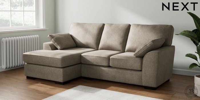 7.2.6 Buy Stamford Small Sofa Chaise - Left Hand Cotswold Chenille Mid Mink Brown Large Square Angle - Dark from the Next UK online shop Click here to use our accessible website