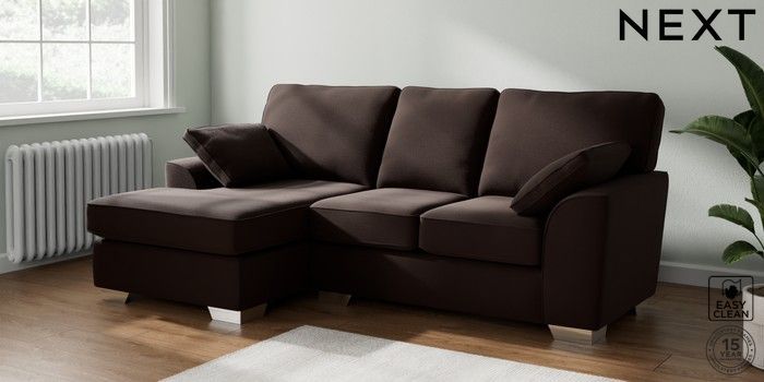 6.12.1 Buy Stamford Small Sofa Chaise - Left Hand Fine Chenille Easy Clean Chocolate Brown Large Square Angle - Chrome Metal from the Next UK online shop Click here to use our accessible website