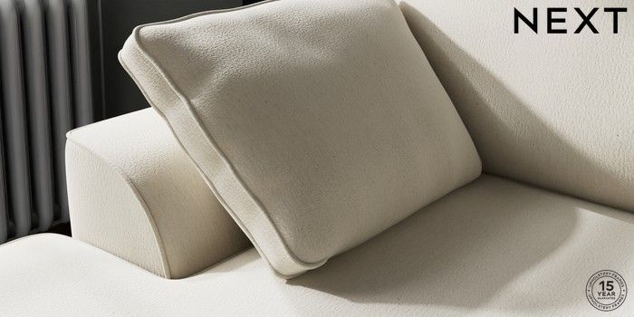 7.2.10 Buy Stamford Small Sofa Chaise - Left Hand Relaxed Linen Look Oyster Large Square Angle - Brushed Brass from the Next UK online shop Click here to use our accessible website