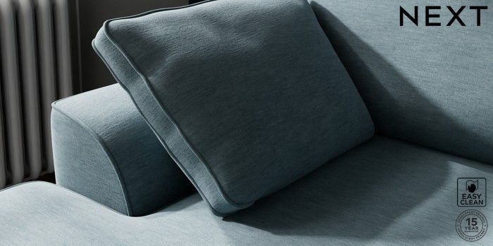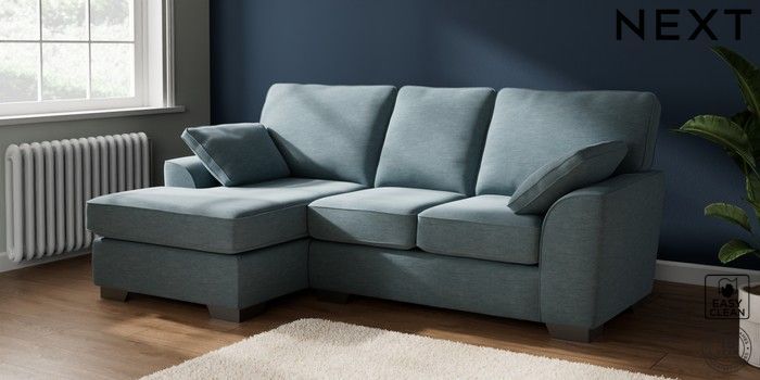 7.3.1 Buy Stamford Small Sofa Chaise - Left Hand Fine Chenille Easy Clean Mid Blue Large Square Angle - Gunmetal from the Next UK online shop Click here to use our accessible website
