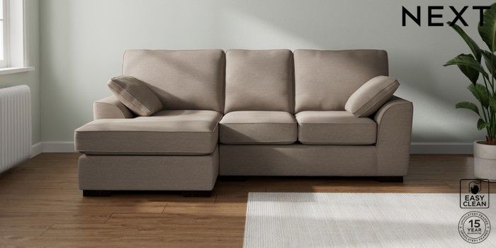7.3.1 Buy Stamford Small Sofa Chaise - Left Hand Fine Chenille Easy Clean Mid Taupe Brown Large Square Angle - Dark from the Next UK online shop Click here to use our accessible website