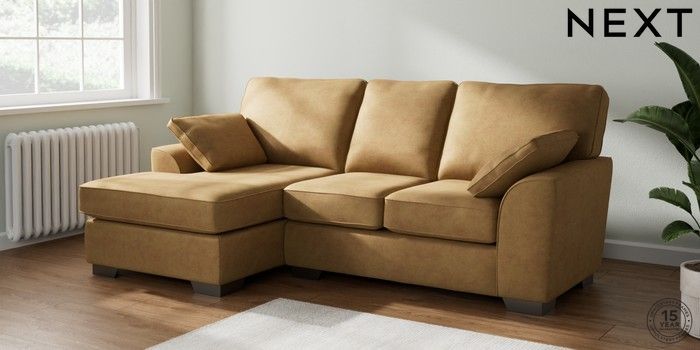 7.2.6 Buy Stamford Small Sofa Chaise - Left Hand Luxe Chenille Honey Yellow Large Square Angle - Gunmetal from the Next UK online shop Click here to use our accessible website