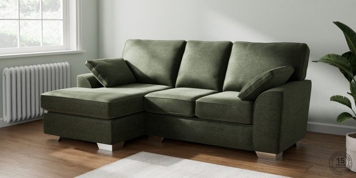 6.12.1 Buy Stamford Small Sofa Chaise - Left Hand Luxe Chenille Mid Green Large Square Angle - Chrome Metal from the Next UK online shop Click here to use our accessible website