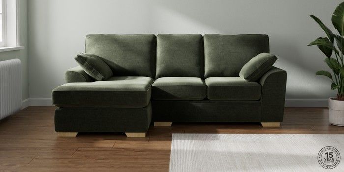 7.0.3 Buy Stamford Small Sofa Chaise - Left Hand Luxe Chenille Mid Green Large Square Angle - Light from the Next UK online shop Click here to use our accessible website