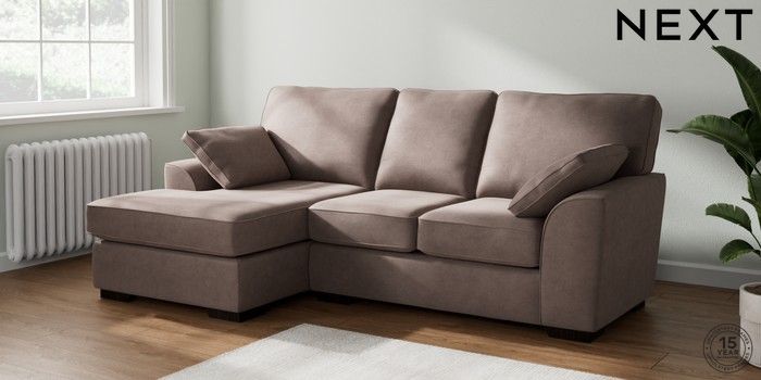 7.2.10 Buy Stamford Small Sofa Chaise - Left Hand Luxe Chenille Mink Brown Large Square Angle - Dark from the Next UK online shop Click here to use our accessible website