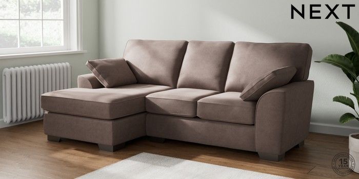 7.2.10 Buy Stamford Small Sofa Chaise - Left Hand Luxe Chenille Mink Brown Large Square Angle - Gunmetal from the Next UK online shop Click here to use our accessible website