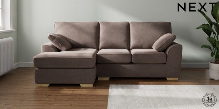 7.2.10 Buy Stamford Small Sofa Chaise - Left Hand Luxe Chenille Mink Brown Large Square Angle - Light from the Next UK online shop Click here to use our accessible website