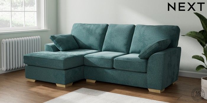 7.2.6 Buy Stamford Small Sofa Chaise - Left Hand Chunky Chenille Mid Teal Green Large Square Angle - Light from the Next UK online shop Click here to use our accessible website