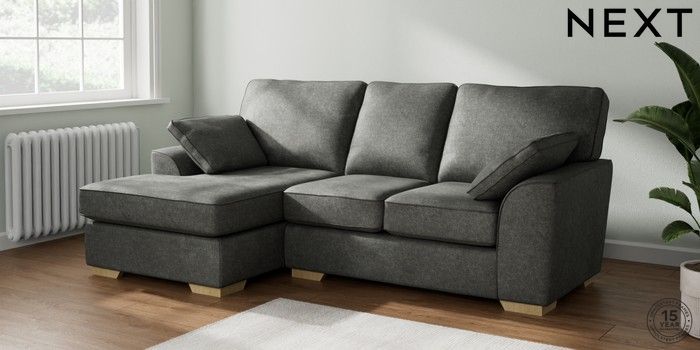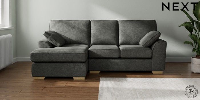 7.2.10 Buy Stamford Small Sofa Chaise - Left Hand Plush Chenille Dark Grey Large Square Angle - Light from the Next UK online shop Click here to use our accessible website