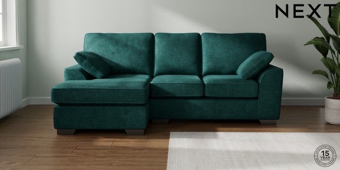 7.3.1 Buy Stamford Small Sofa Chaise - Left Hand Plush Chenille Dark Teal Green Large Square Angle - Gunmetal from the Next UK online shop Click here to use our accessible website