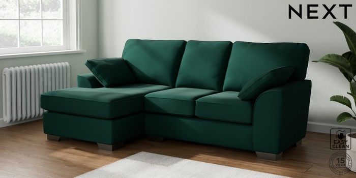 6.12.1 Buy Stamford Small Sofa Chaise - Left Hand Plush Velvet Easy Clean Bottle Green Large Square Angle - Gunmetal from the Next UK online shop Click here to use our accessible website