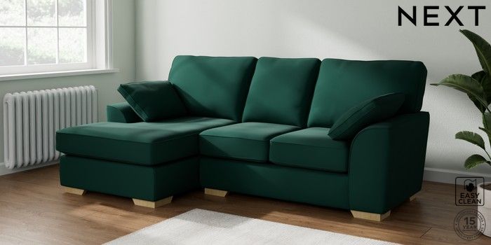 6.12.1 Buy Stamford Small Sofa Chaise - Left Hand Plush Velvet Easy Clean Bottle Green Large Square Angle - Light from the Next UK online shop Click here to use our accessible website