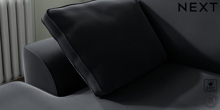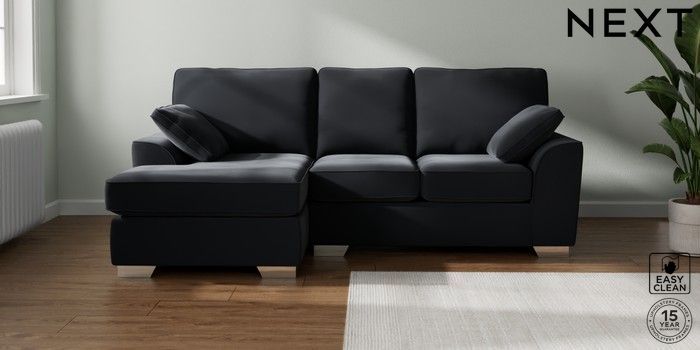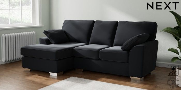 7.2.10 Buy Stamford Small Sofa Chaise - Left Hand Plush Velvet Easy Clean Charcoal Grey Large Square Angle - Chrome Metal from the Next UK online shop Click here to use our accessible website