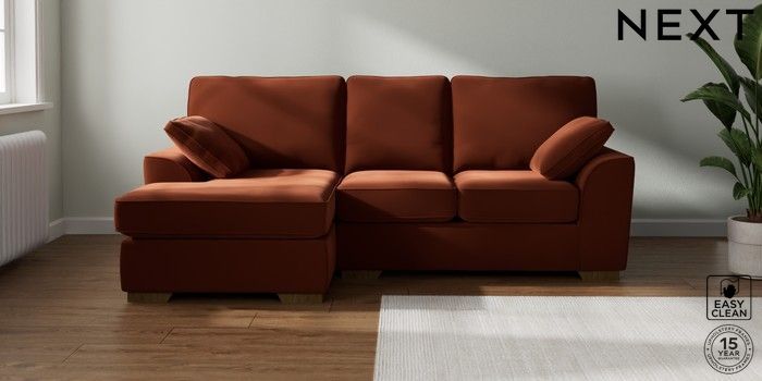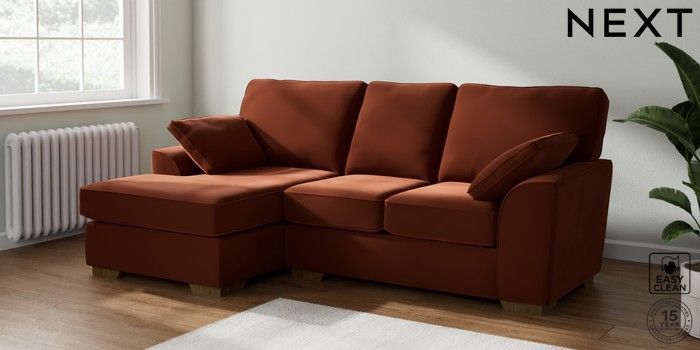 7.2.10 Buy Stamford Small Sofa Chaise - Left Hand Plush Velvet Easy Clean Ginger Orange Large Square Angle - Mid from the Next UK online shop Click here to use our accessible website