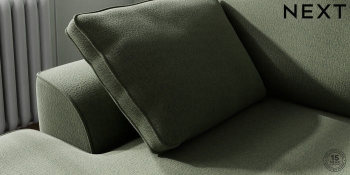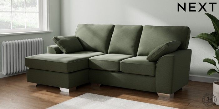 7.3.1 Buy Stamford Small Sofa Chaise - Left Hand Relaxed Linen Look Dark Green Large Square Angle - Chrome Metal from the Next UK online shop Click here to use our accessible website