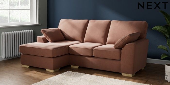 7.2.10 Buy Stamford Small Sofa Chaise - Left Hand Relaxed Linen Look Light Rust Brown Large Square Angle - Light from the Next UK online shop Click here to use our accessible website