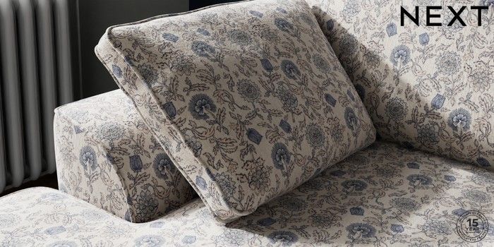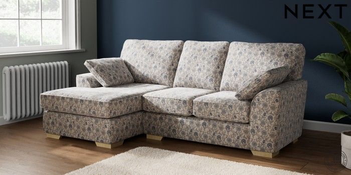 7.3.1 Buy Stamford Small Sofa Chaise - Left Hand Relaxed Linen Look Print Woodblock Floral Blue Large Square Angle - Light from the Next UK online shop Click here to use our accessible website