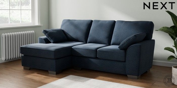 7.2.6 Buy Stamford Small Sofa Chaise - Left Hand Ripple Chenille Dark Blue Large Square Angle - Gunmetal from the Next UK online shop Click here to use our accessible website