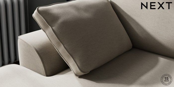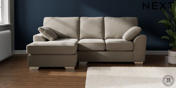 7.2.10 Buy Stamford Small Sofa Chaise - Left Hand Ripple Chenille Light Natural Large Square Angle - Chrome Metal from the Next UK online shop Click here to use our accessible website