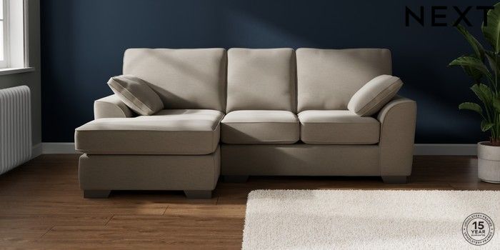 7.2.10 Buy Stamford Small Sofa Chaise - Left Hand Ripple Chenille Light Natural Large Square Angle - Gunmetal from the Next UK online shop Click here to use our accessible website