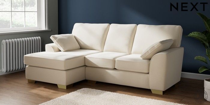 7.2.10 Buy Stamford Small Sofa Chaise - Left Hand Ripple Chenille Oyster Large Square Angle - Brushed Brass from the Next UK online shop Click here to use our accessible website