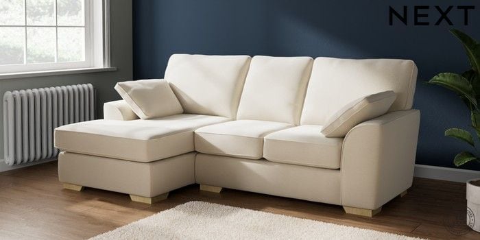 7.2.10 Buy Stamford Small Sofa Chaise - Left Hand Ripple Chenille Oyster Large Square Angle - Light from the Next UK online shop Click here to use our accessible website