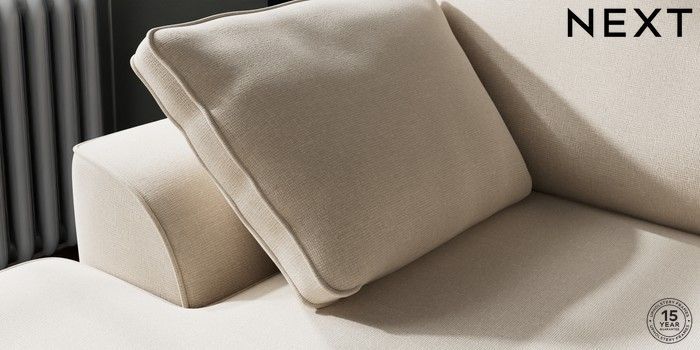 7.2.10 Buy Stamford Small Sofa Chaise - Left Hand Studio Chenille Oyster Large Square Angle - Chrome Metal from the Next UK online shop Click here to use our accessible website