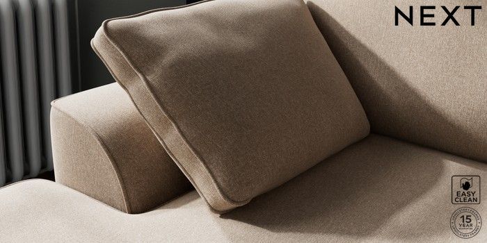 7.3.1 Buy Stamford Small Sofa Chaise - Left Hand Tweedy Blend Easy Clean Light Dove Natural Large Square Angle - Brushed Brass from the Next UK online shop Click here to use our accessible website