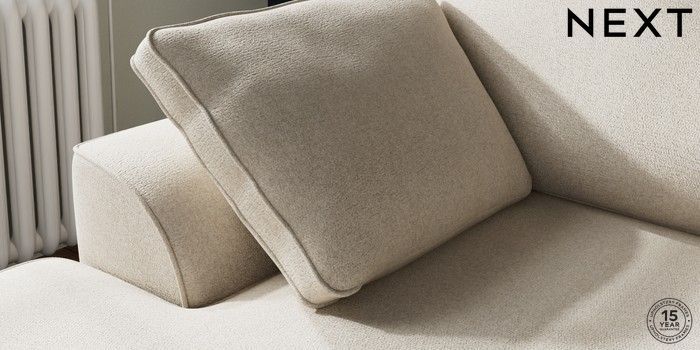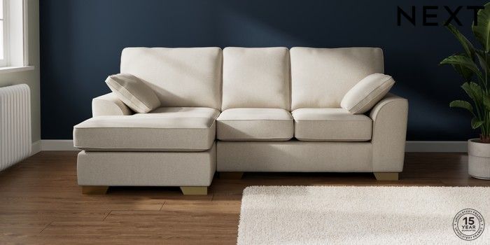 7.2.10 Buy Stamford Small Sofa Chaise - Left Hand Tweedy Chenille Oyster Large Square Angle - Brushed Brass from the Next UK online shop Click here to use our accessible website