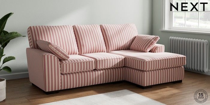 7.3.1 Buy Stamford Small Sofa Chaise - Right Hand Bold Chenille Stripe Dark Pink Large Square Angle - Dark from the Next UK online shop Click here to use our accessible website