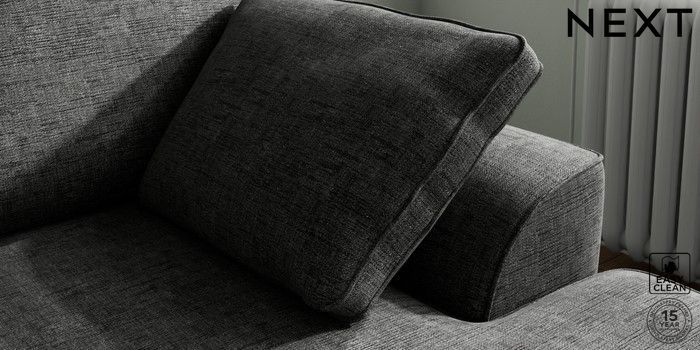 7.3.1 Buy Stamford Small Sofa Chaise - Right Hand Boucle Weave Easy Clean Charcoal Grey Large Square Angle - Brushed Brass from the Next UK online shop Click here to use our accessible website