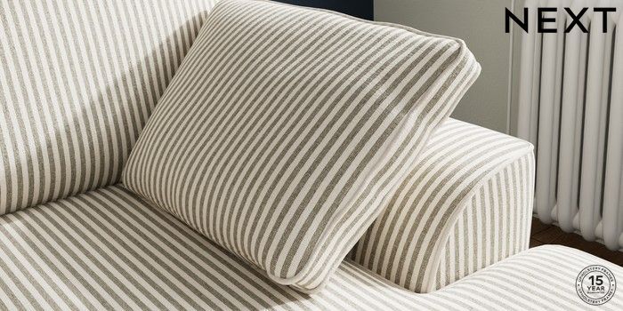7.3.1 Buy Stamford Small Sofa Chaise - Right Hand Chenille Stripe Moss Green Large Square Angle - Dark from the Next UK online shop Click here to use our accessible website