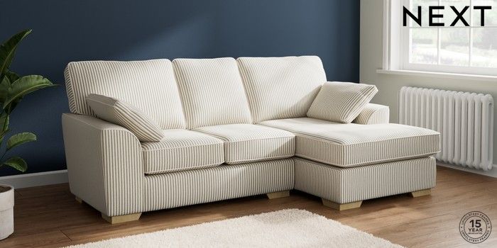 7.3.1 Buy Stamford Small Sofa Chaise - Right Hand Chenille Stripe Moss Green Large Square Angle - Light from the Next UK online shop Click here to use our accessible website