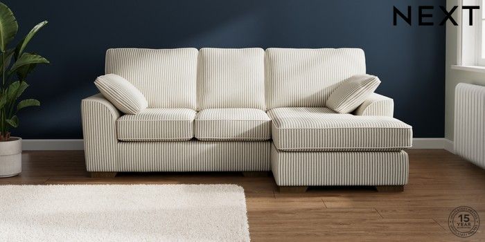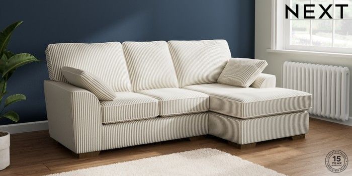7.3.1 Buy Stamford Small Sofa Chaise - Right Hand Chenille Stripe Moss Green Large Square Angle - Mid from the Next UK online shop Click here to use our accessible website
