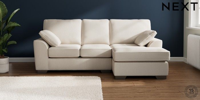 7.3.1 Buy Stamford Small Sofa Chaise - Right Hand Chenille Stripe Natural Large Square Angle - Gunmetal from the Next UK online shop Click here to use our accessible website
