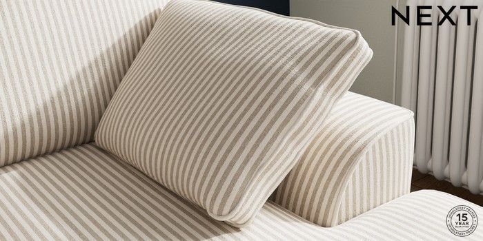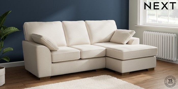 7.3.1 Buy Stamford Small Sofa Chaise - Right Hand Chenille Stripe Natural Large Square Angle - Mid from the Next UK online shop Click here to use our accessible website