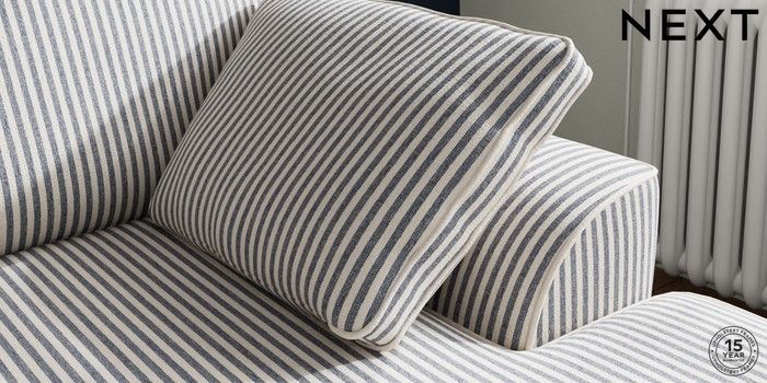 7.3.1 Buy Stamford Small Sofa Chaise - Right Hand Chenille Stripe Slate Blue Large Square Angle - Brushed Brass from the Next UK online shop Click here to use our accessible website