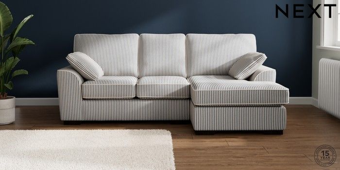 7.3.1 Buy Stamford Small Sofa Chaise - Right Hand Chenille Stripe Slate Blue Large Square Angle - Dark from the Next UK online shop Click here to use our accessible website