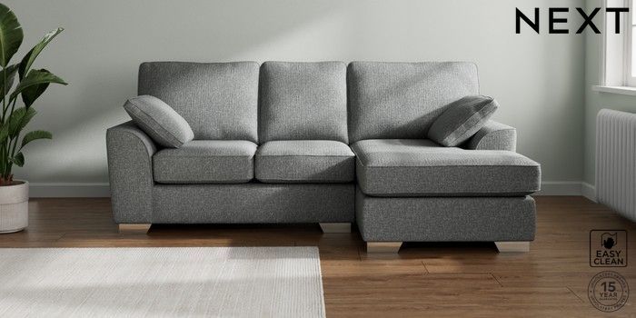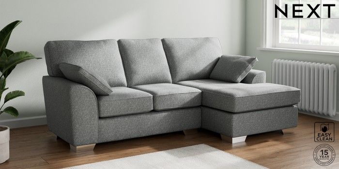 7.3.1 Buy Stamford Small Sofa Chaise - Right Hand Chunky Boucle Easy Clean Mid Grey Large Square Angle - Chrome Metal from the Next UK online shop Click here to use our accessible website