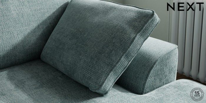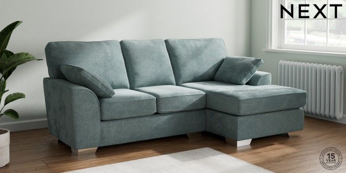 7.3.1 Buy Stamford Small Sofa Chaise - Right Hand Chunky Chenille Light Teal Green Large Square Angle - Chrome Metal from the Next UK online shop Click here to use our accessible website
