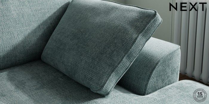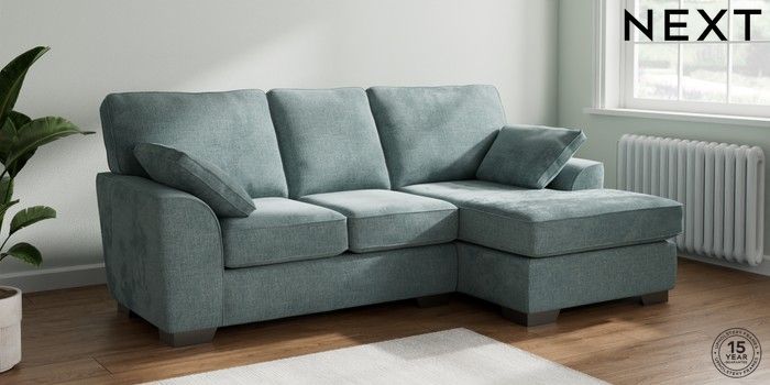 7.3.1 Buy Stamford Small Sofa Chaise - Right Hand Chunky Chenille Light Teal Green Large Square Angle - Gunmetal from the Next UK online shop Click here to use our accessible website