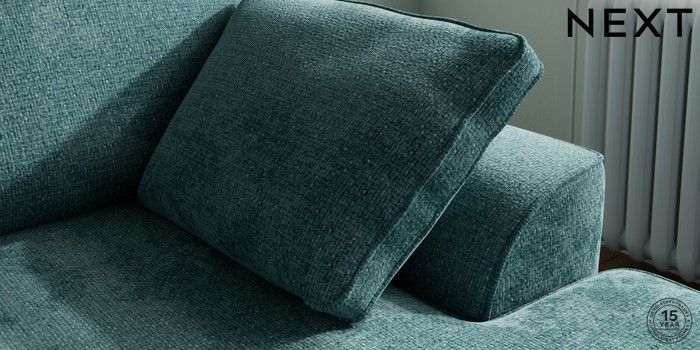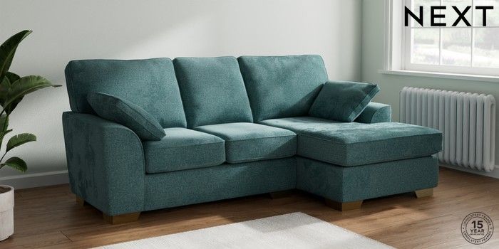 7.2.10 Buy Stamford Small Sofa Chaise - Right Hand Chunky Chenille Mid Teal Green Large Square Angle - Brushed Brass from the Next UK online shop Click here to use our accessible website