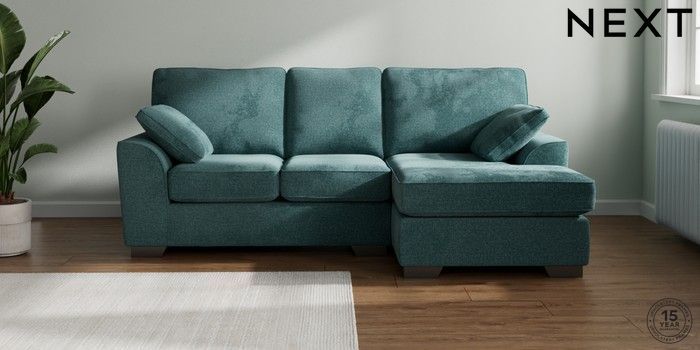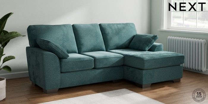 7.3.1 Buy Stamford Small Sofa Chaise - Right Hand Chunky Chenille Mid Teal Green Large Square Angle - Gunmetal from the Next UK online shop Click here to use our accessible website