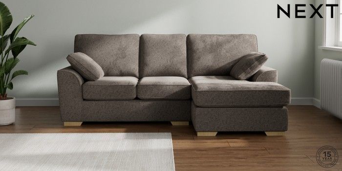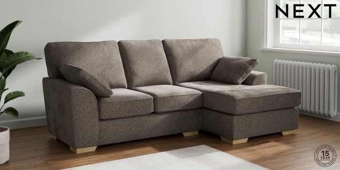 7.2.6 Buy Stamford Small Sofa Chaise - Right Hand Chunky Chenille Mink Brown Large Square Angle - Light from the Next UK online shop Click here to use our accessible website