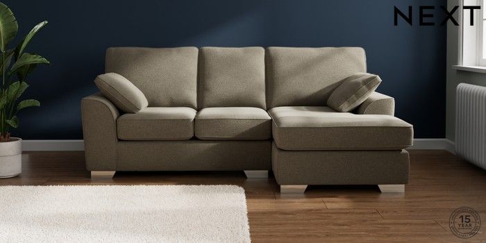 7.2.10 Buy Stamford Small Sofa Chaise - Right Hand Chunky Marl Light Olive Green Large Square Angle - Chrome Metal from the Next UK online shop Click here to use our accessible website