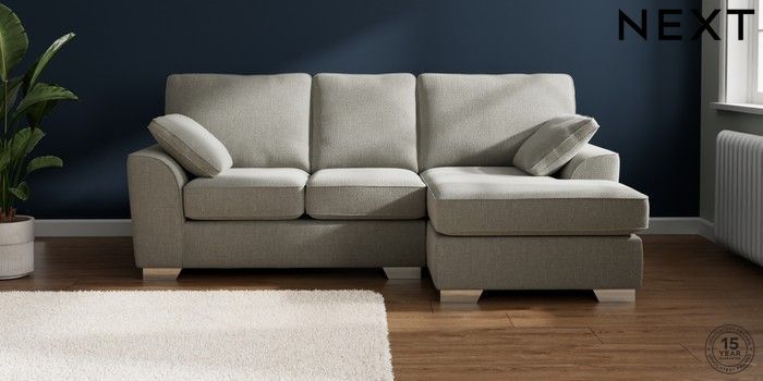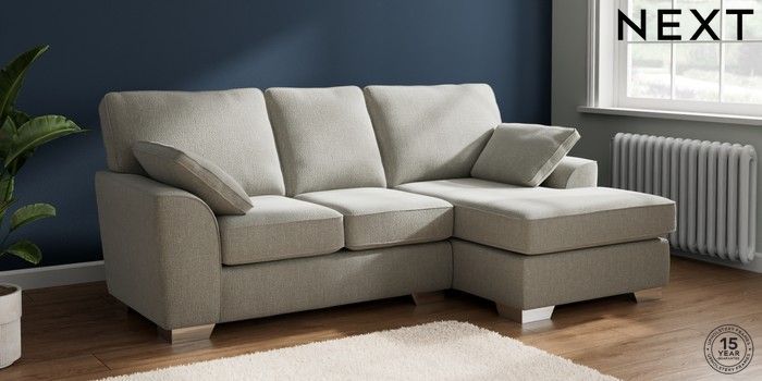 7.2.10 Buy Stamford Small Sofa Chaise - Right Hand Chunky Texture Dove Large Square Angle - Chrome Metal from the Next UK online shop Click here to use our accessible website