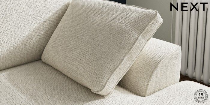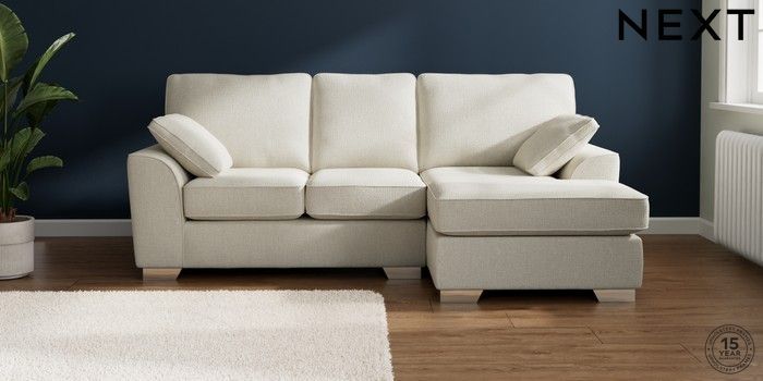 7.2.10 Buy Stamford Small Sofa Chaise - Right Hand Chunky Texture Oyster Large Square Angle - Chrome Metal from the Next UK online shop Click here to use our accessible website