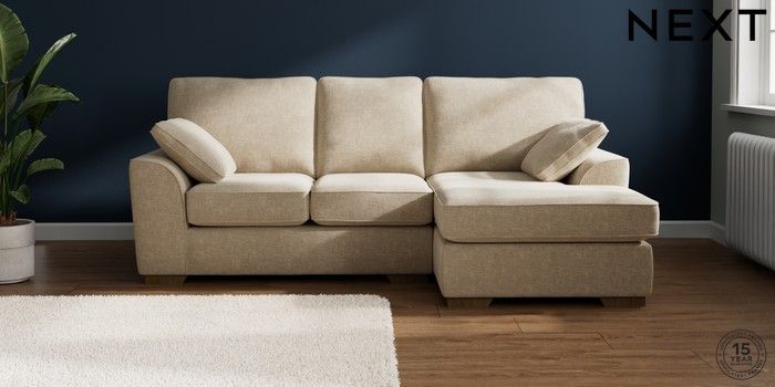7.2.6 Buy Stamford Small Sofa Chaise - Right Hand Chunky Weave Cream Large Square Angle - Mid from the Next UK online shop Click here to use our accessible website