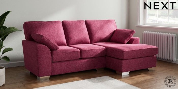 7.2.10 Buy Stamford Small Sofa Chaise - Right Hand Cotswold Chenille Dark Raspberry Pink Large Square Angle - Chrome Metal from the Next UK online shop Click here to use our accessible website