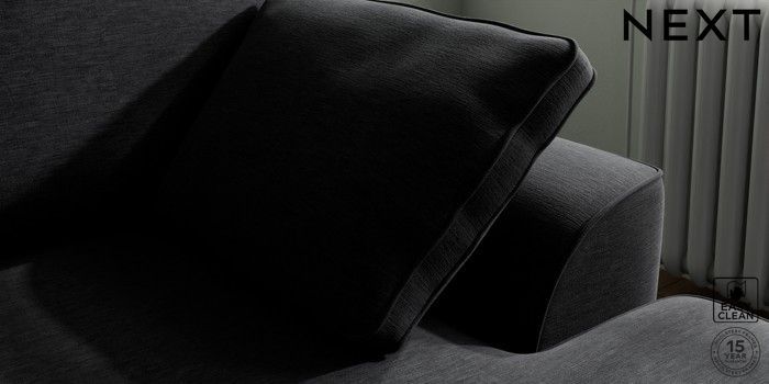 7.2.10 Buy Stamford Small Sofa Chaise - Right Hand Fine Chenille Easy Clean Black Large Square Angle - Gunmetal from the Next UK online shop Click here to use our accessible website